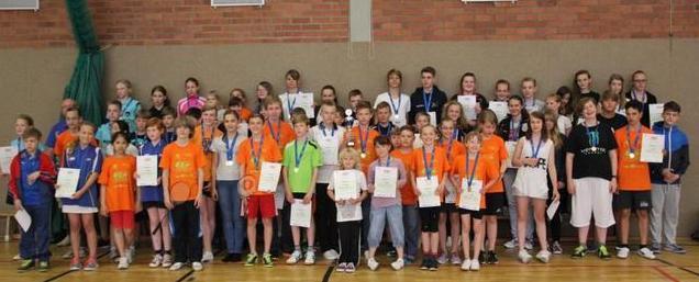 Endlich wieder dabei, Badminton bei den 12. Jugendsportspielen in Mecklenburg Vorpommern. Ausgerichtet hat dieses Event der BSC95 Schwerin. An zwei Tagen (28./29. Juni 2014) trafen sich fast 80 Sportlerinnen und Sportler, bis 15 Jahre, aus dem gesamten Land. Gespielt wurde in zwei Wertungsgruppen, um auch nicht so erfahrenen Sportlern die Möglichkeit zu geben sich mit gleich starken Gegnern zu messen. 151 Einzelspiele standen am ersten Tag auf dem Programm, eine kleine Meisterleistung in einer 6 Feld (Badmintonfelder) Sporthalle. Alle Spiele konnten jedoch pünktlich beendet werden, so dass die Vereine auch noch die Zeit hatten das Strandfest zu genießen. Gekämpft wurde um jeden Ball in den Wertungsgruppen, wobei gerade in der B Wertung sich viele Spielerinnen und Spieler aus den nicht im Landesverband organisierten Vereinen durchsetzen. Bei den Doppeln am zweiten Tag blieben dann die Landesverbandsvereine fast unter sich. Somit waren auch „nur“ 58 Spiele zu absolvieren, die nicht minder spannend waren.