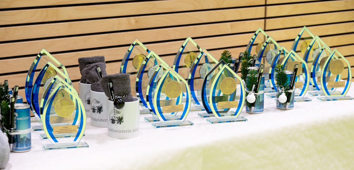 44 der besten Athletinnen und Athleten aus sechs Vereinen folgten der Einladung. Auch wenn ein paar Traditionsvereine dem Jahreshighlght fern blieben, war es doch eine vernünftige Teilnehmerzahl. Allerdings muss man auch bedenken, dass die nur zustande kam, weil das Feld traditionell mit dem starken Jugendkader des Landes aufgestockt wird. Leider gibt es auch innerhalb unseres eigenen Vereins derzeit nur wenige Leute, die sich für die LEM berufen fühlen oder aber überhaupt antreten dürfen (wer in einem anderen Bundesland Liga spielt, darf in MV nicht Meisterschaft spielen). Dazu kam, dass sich unser Mixed-Silbermedaillengewinner von 2024, Patrick, noch auf der Rückreise aus Bayern befand.